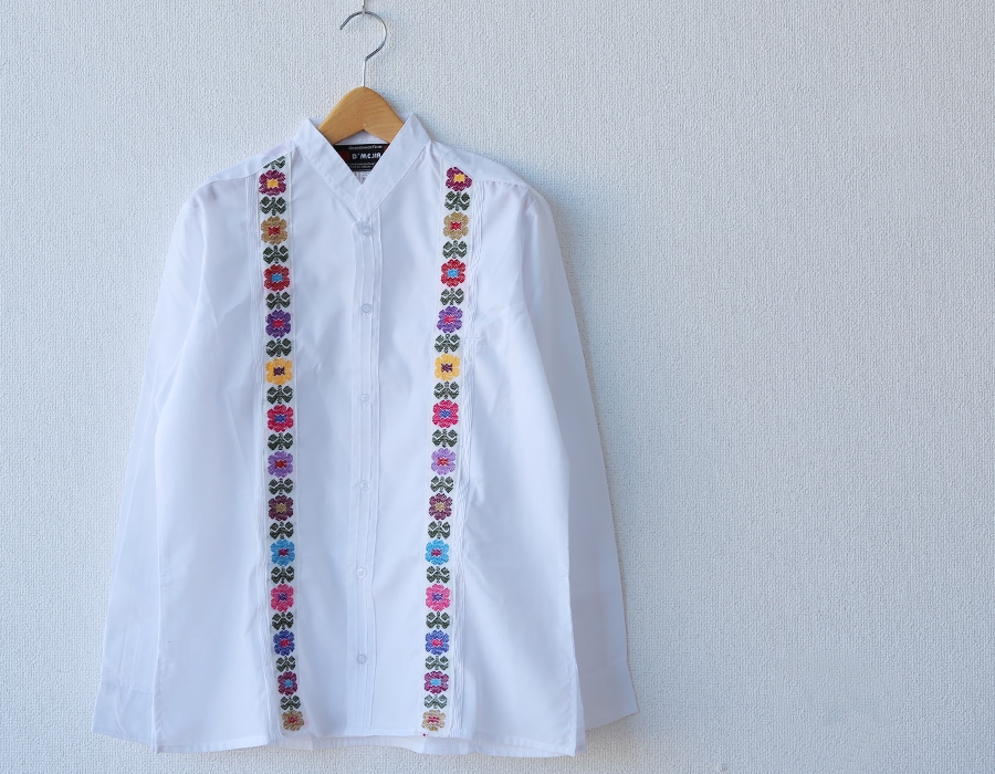 シンプルなドレスシャツに、メキシコの伝統的な花柄刺繍を施した使いやすい長袖シャツです。