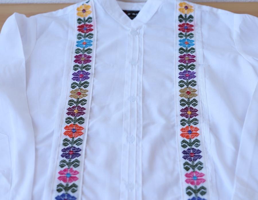 シンプルなドレスシャツに、メキシコの伝統的な花柄刺繍を施した使いやすい長袖シャツです。