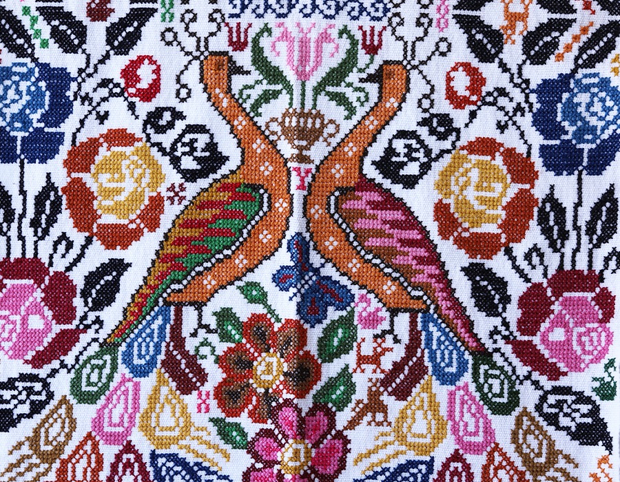 メキシコの刺繍がたっぷりつまった、パッと目を引くストール。