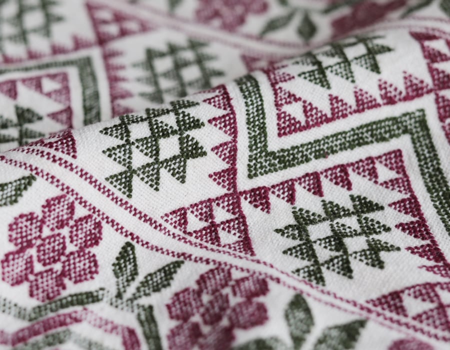 カラフルなお花や幾何学模様がかわいらしい、伝統的な織り手法。