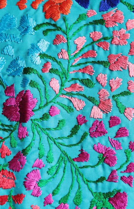 カラフルな糸でぎっしりと施された刺繍にうっとり。
