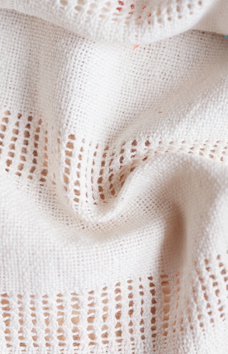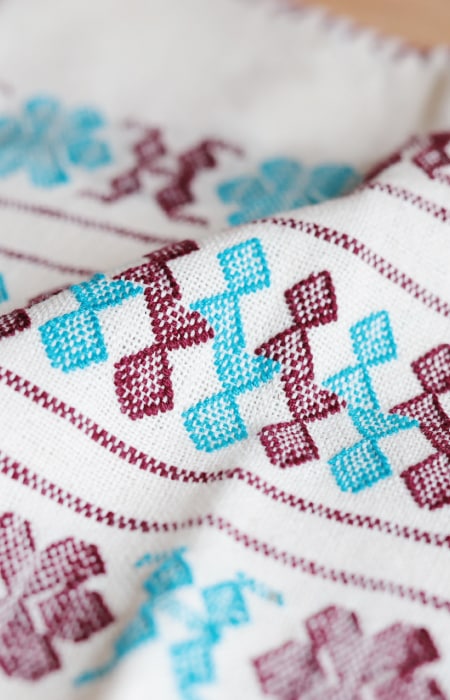 カラフルなお花や幾何学模様がかわいらしい、伝統的な織り手法。