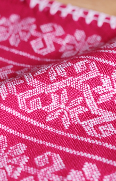 カラフルなお花や幾何学模様がかわいらしい、伝統的な織り手法。