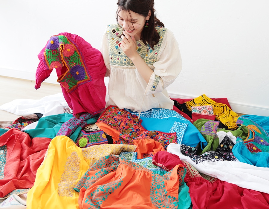 メキシコの伝統的な織りと刺繍が合わさった、目にも鮮やかなワンピース