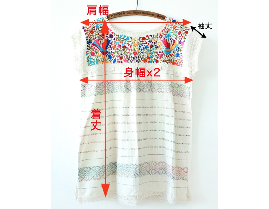 刺繍部分に接ぎ合わされている布は、「telar de pedales=ペダル織り」で作られた軽やかな織布。透け感があり着心地がとても軽く、夏の時期も蒸れずにサラッとご着用いただけます◎