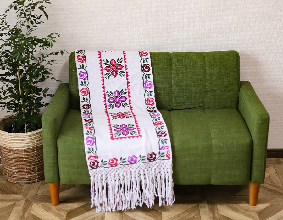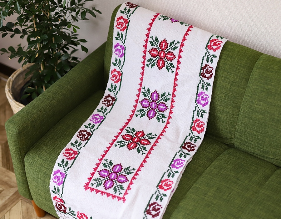 存在感のある刺繍は、ソファーやテーブルにかけてインテリアとして楽しむのもオススメです◎